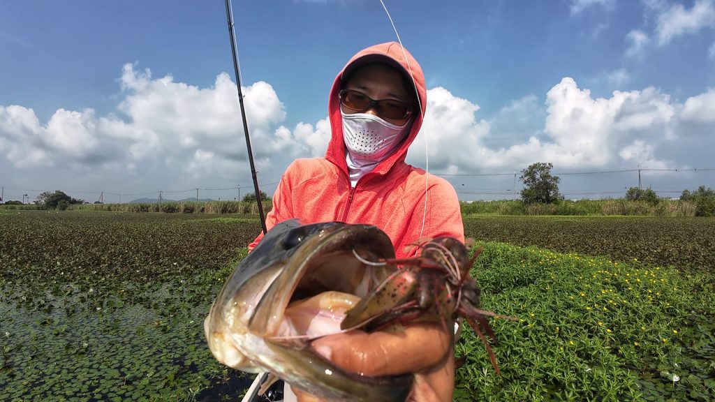 杉山はズーム のスーパースピードクローを使用して釣っていますが、