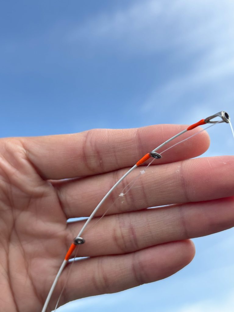 この仕掛けのメリットはリーダーとの結束部がスイベルではなく、ちちわのため仕掛けを巻き込んで穂先を折ってしまうリスクが軽減できます。