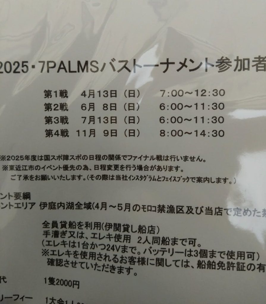 出船時間は、セブンパームス主催の大会の出船時間に合わせて営業されています。