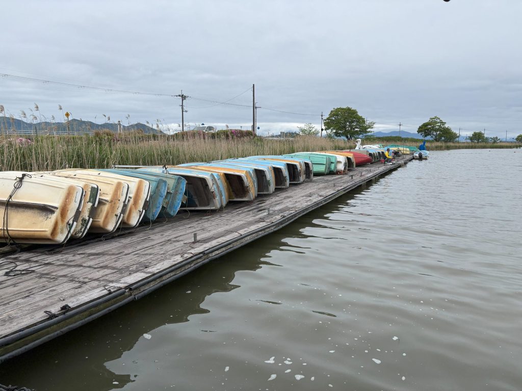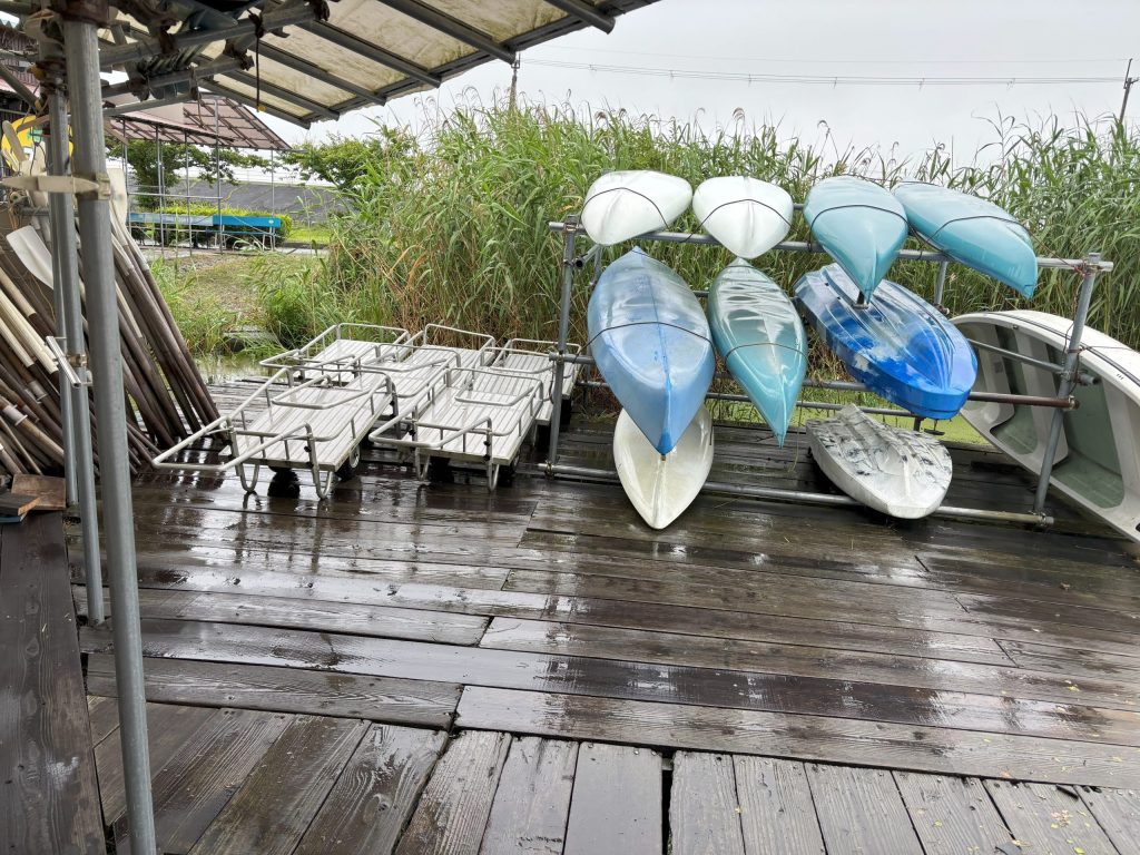 上流では水草の草刈りを行っている船が作業していることがあります。近づかないように気を付けましょう。